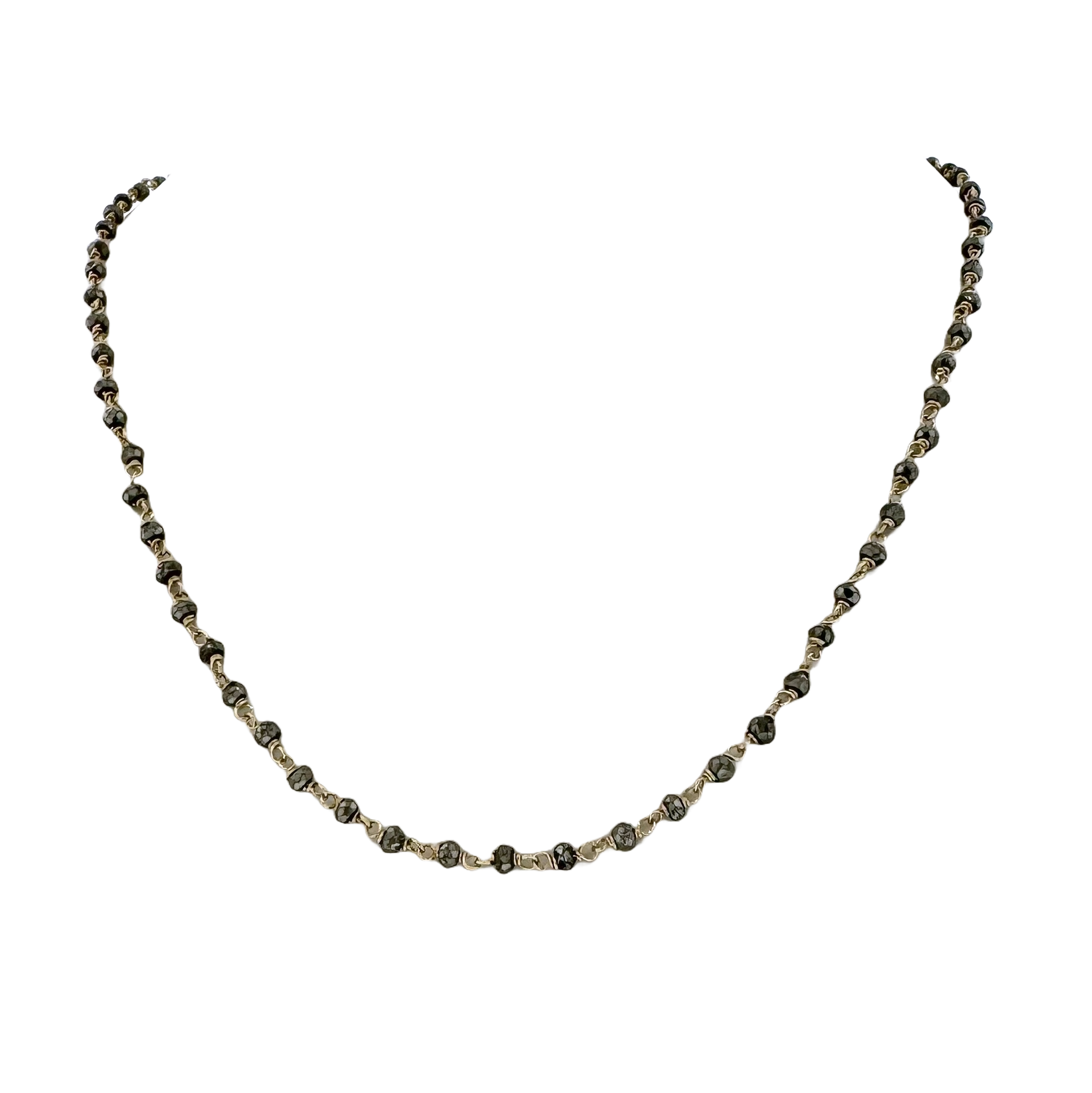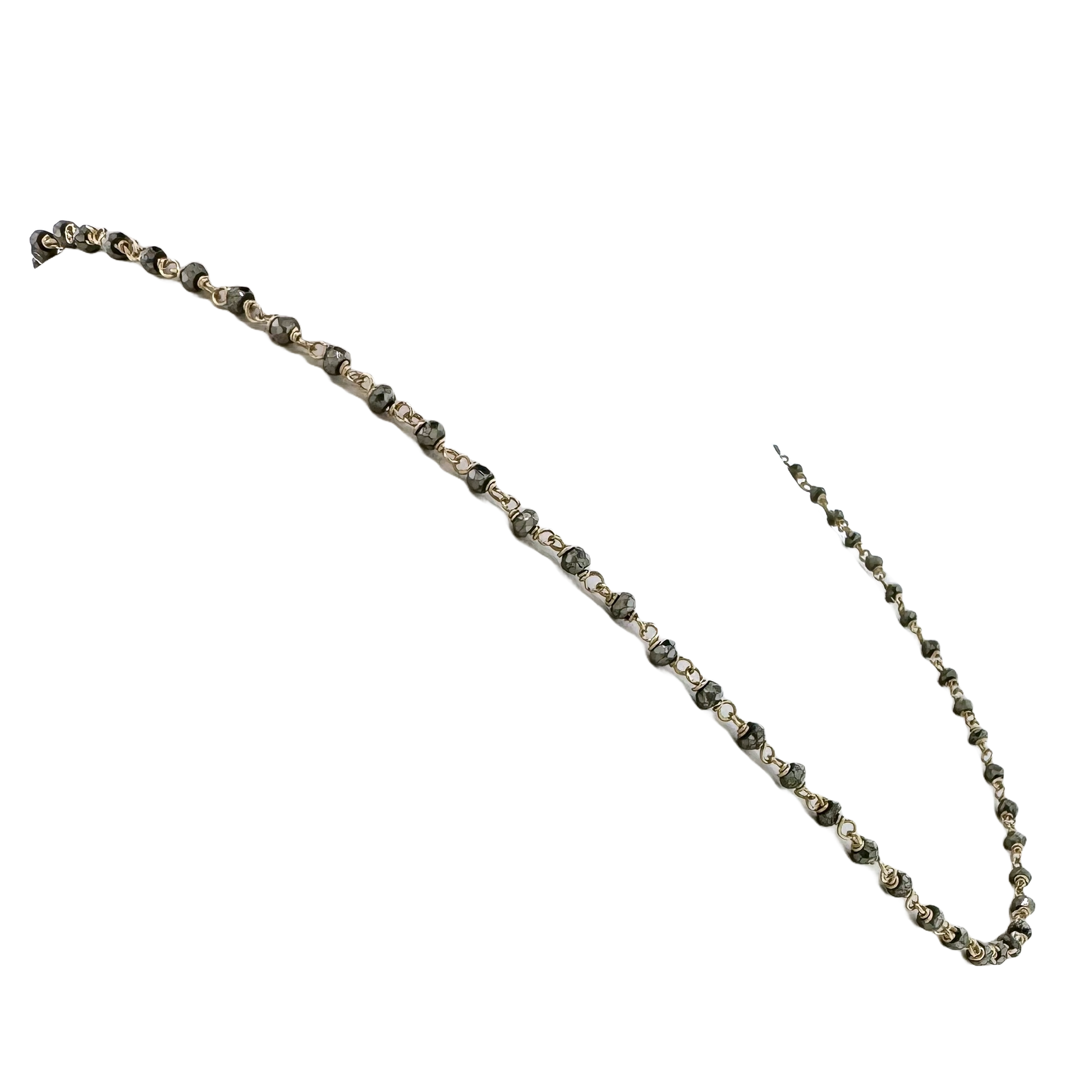 Estate 14k yellow gold necklace chain with wire wrapped faceted pyrite beads. Necklace measures 16.25" in length and has a spring ring clasp for closure.