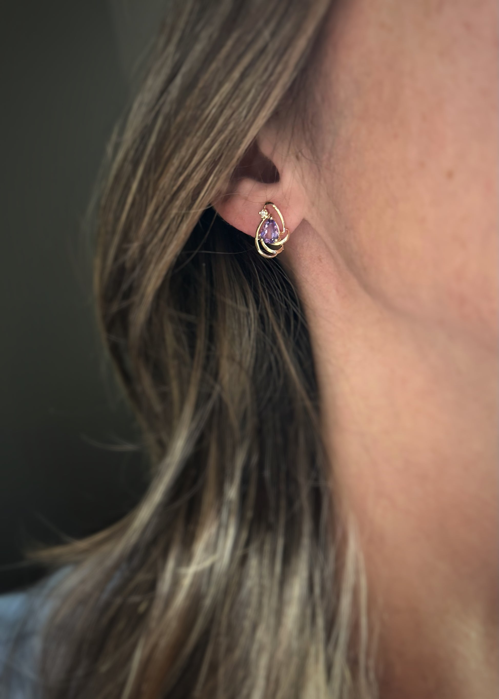 Estate 14k + Amethyst and Diamond Swirl Earrings