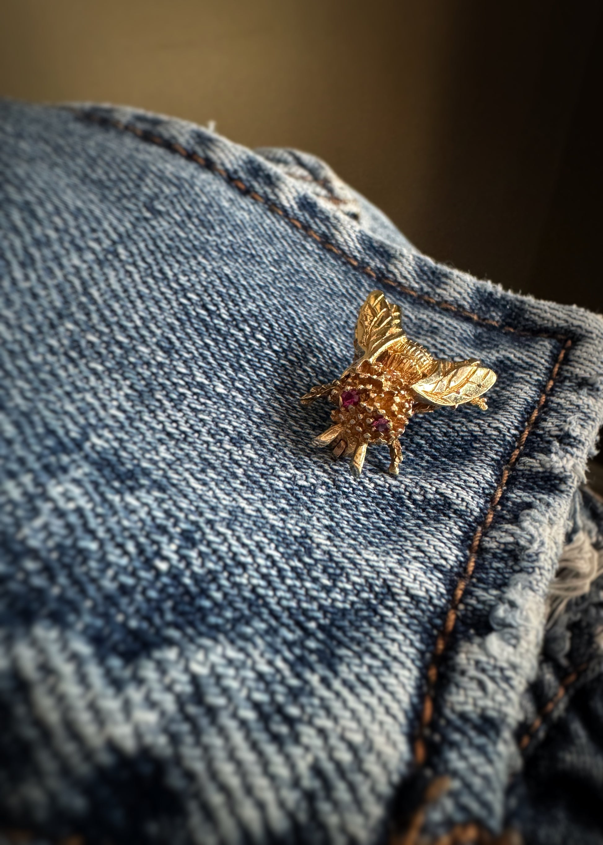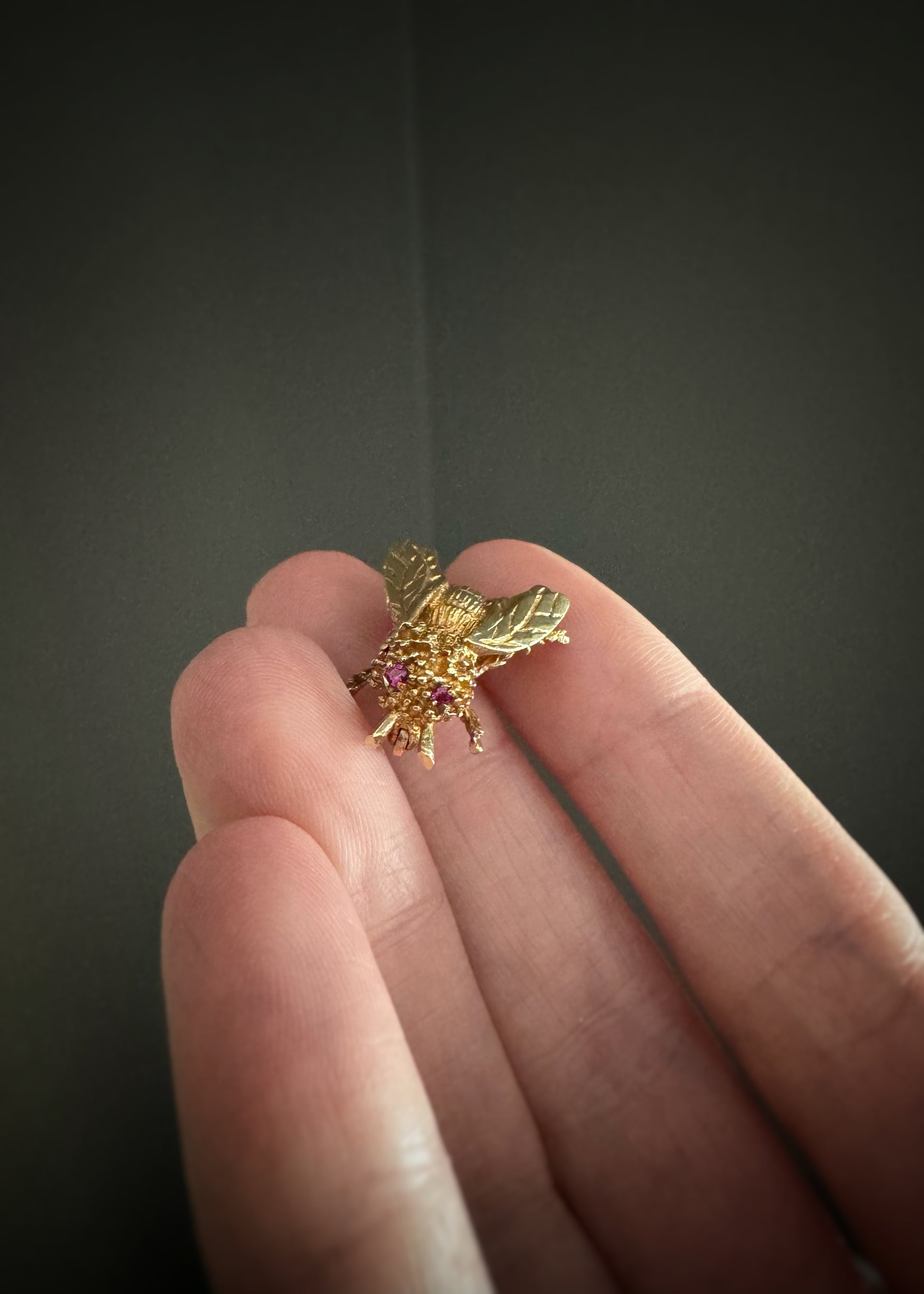 Estate 14k + Bee Brooch with Ruby Eyes