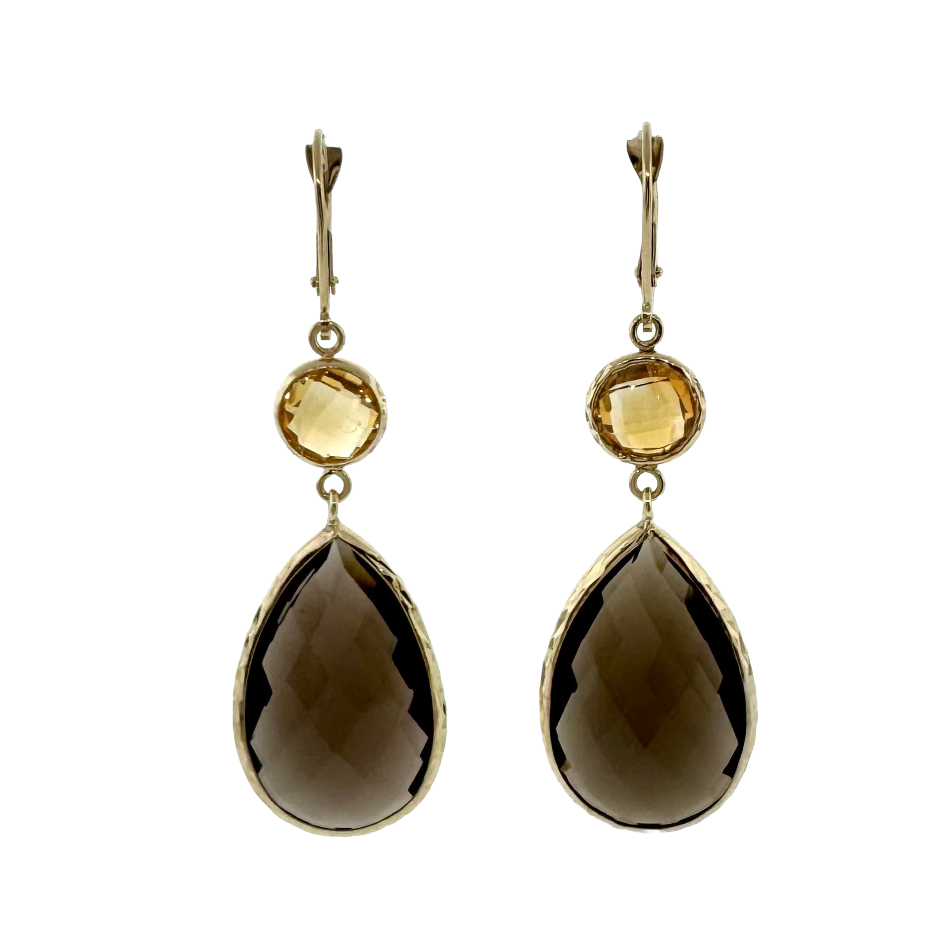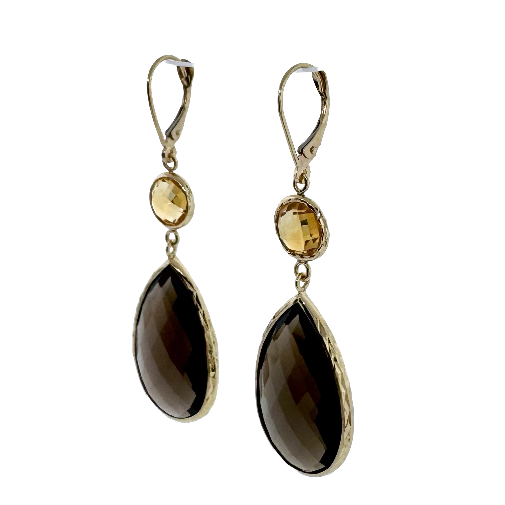 Estate 14k + Citrine and Smoky Quartz Dangle Earrings