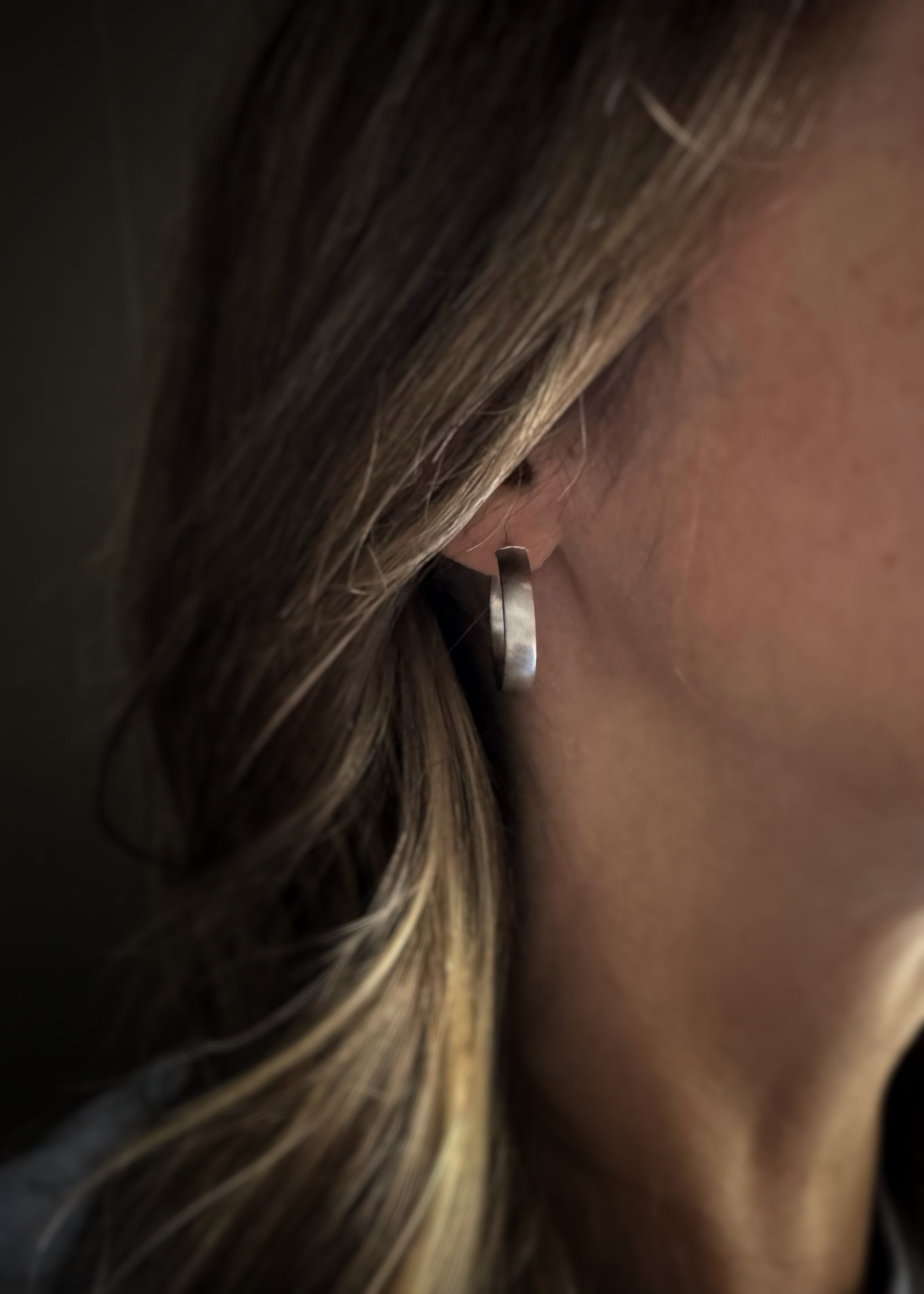 Estate 14k white gold hollow satin hoop earrings. These classic hoop earrings measure 5mm in width and a tube depth of 1.8mm. They have an outer diameter of 1". Weigh 3.5g.