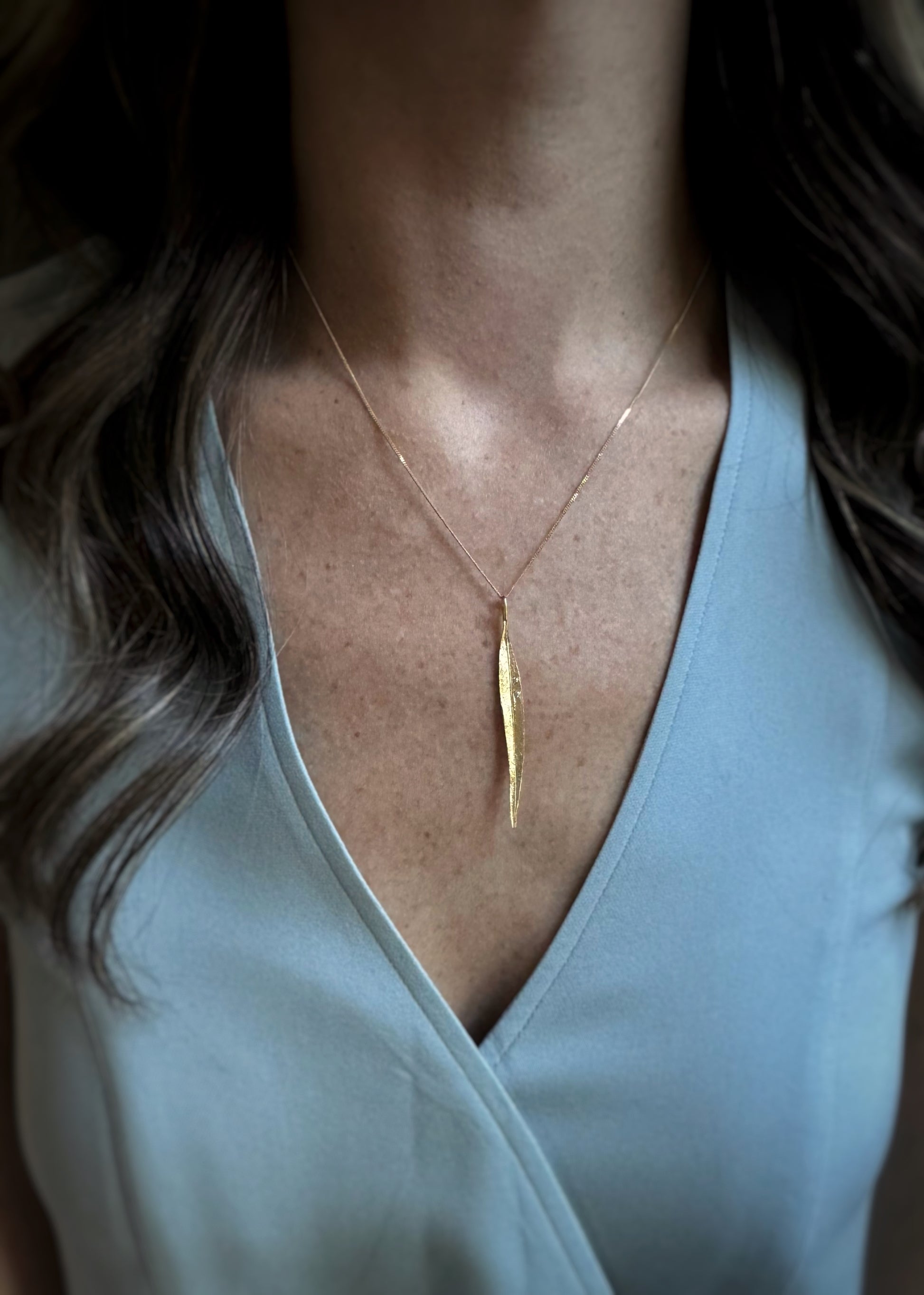 Estate 14k + Diamond Large Leaf Necklace