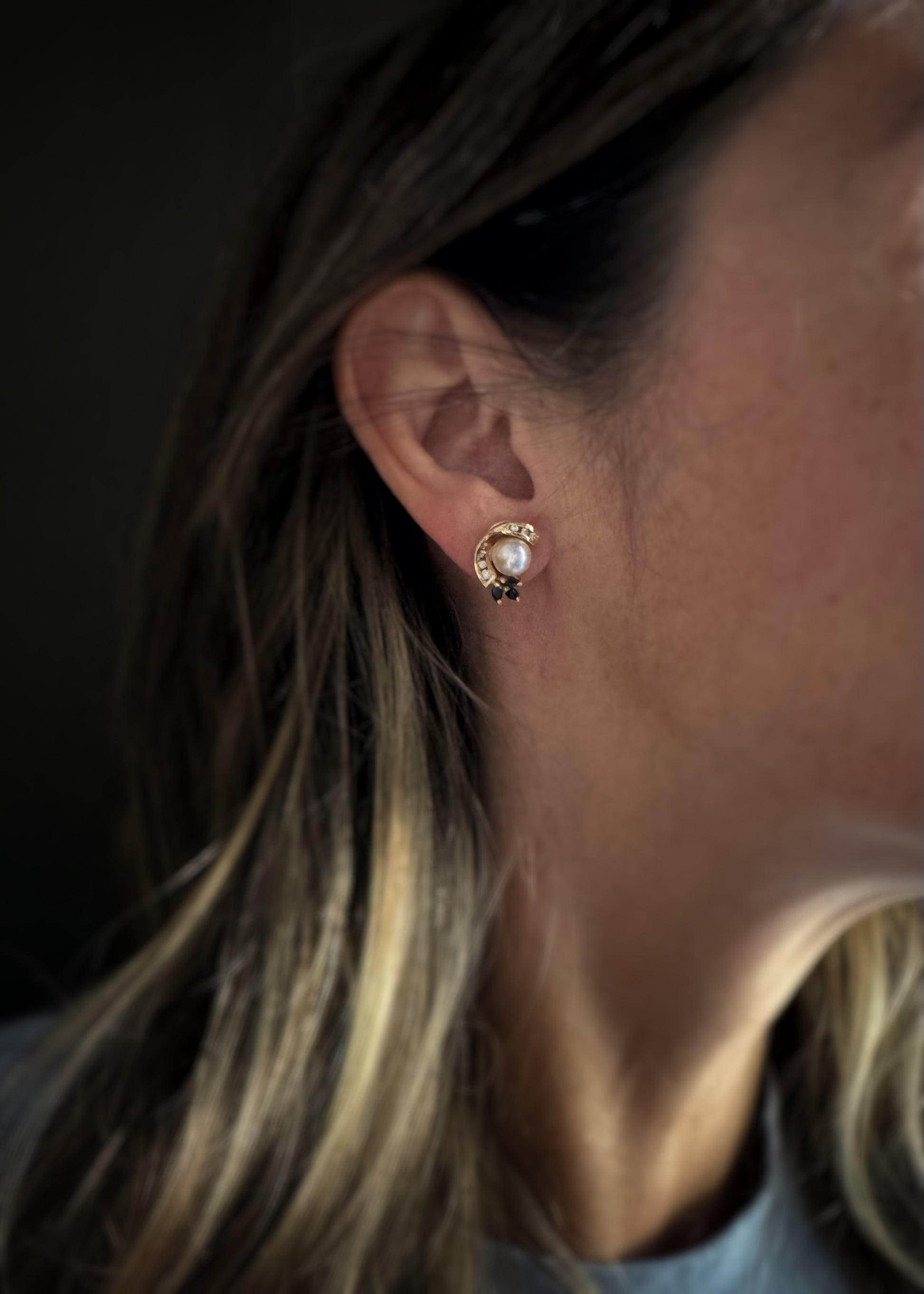 Estate 14k + Pearl Earrings with Sapphires and Diamonds