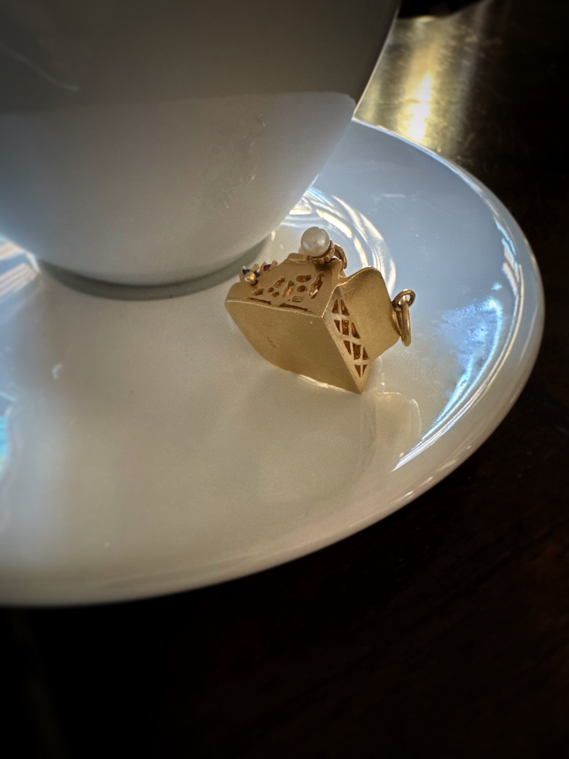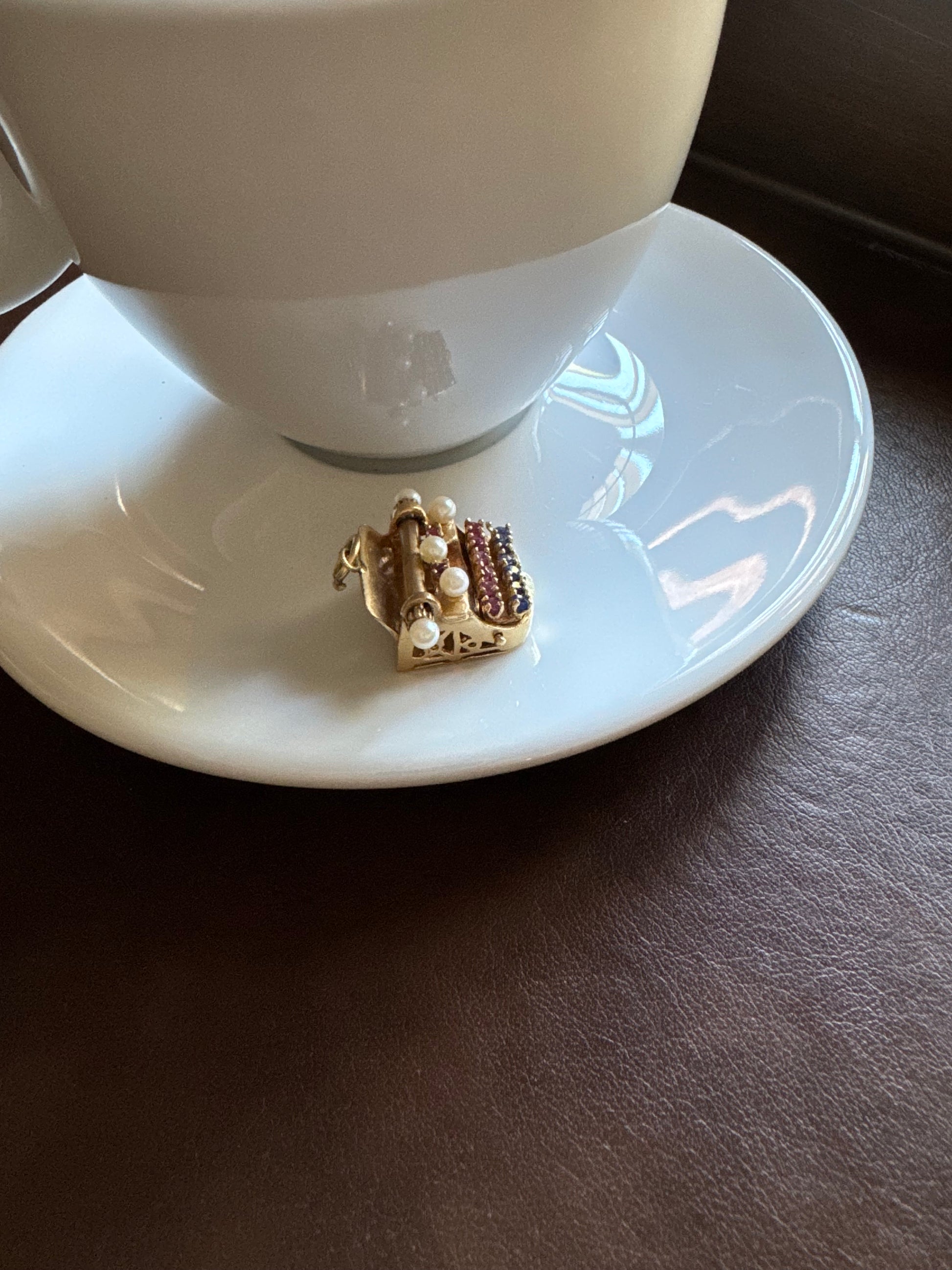 Vintage 14k + Sapphire Ruby and Pearl Typewriter Charm