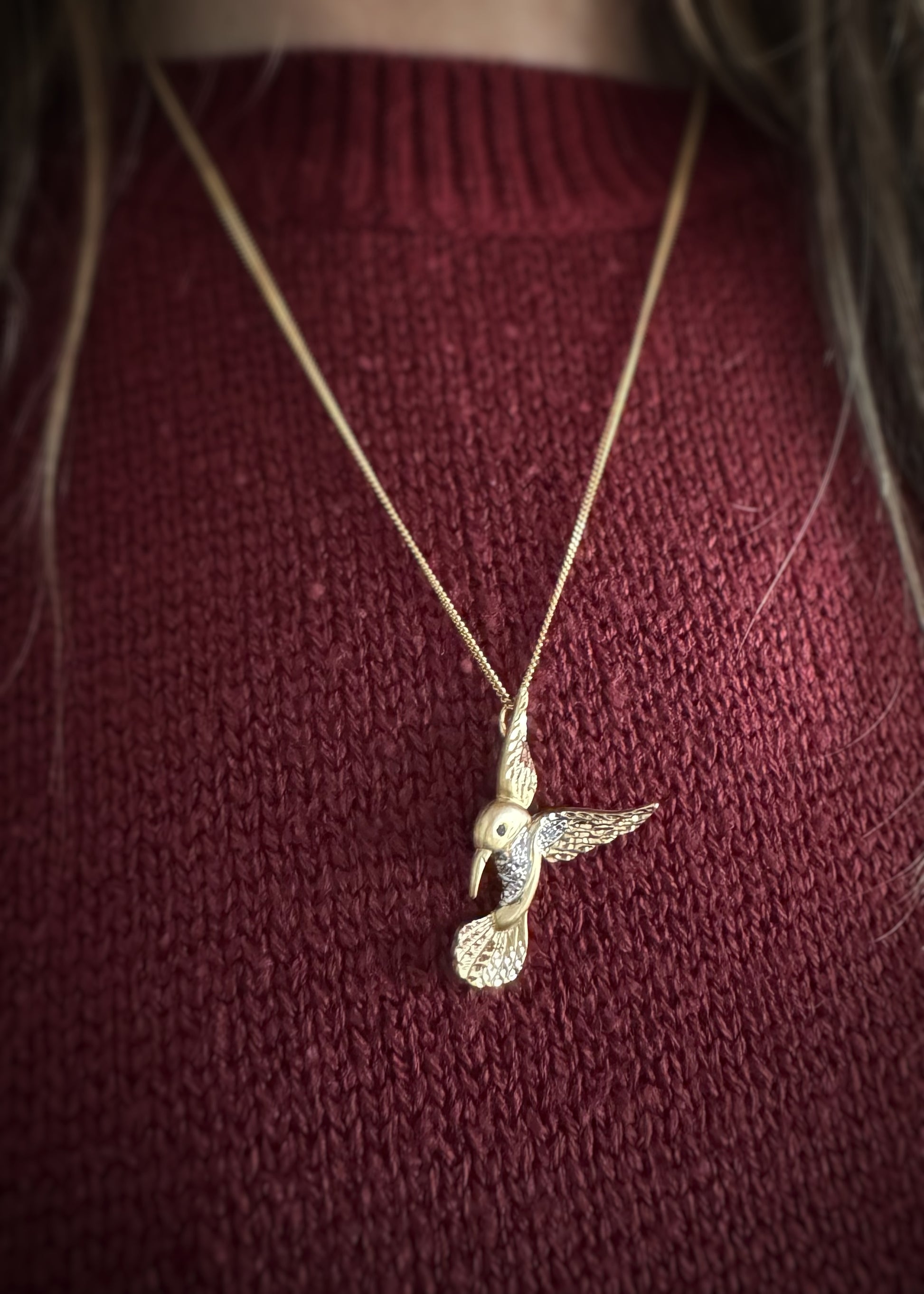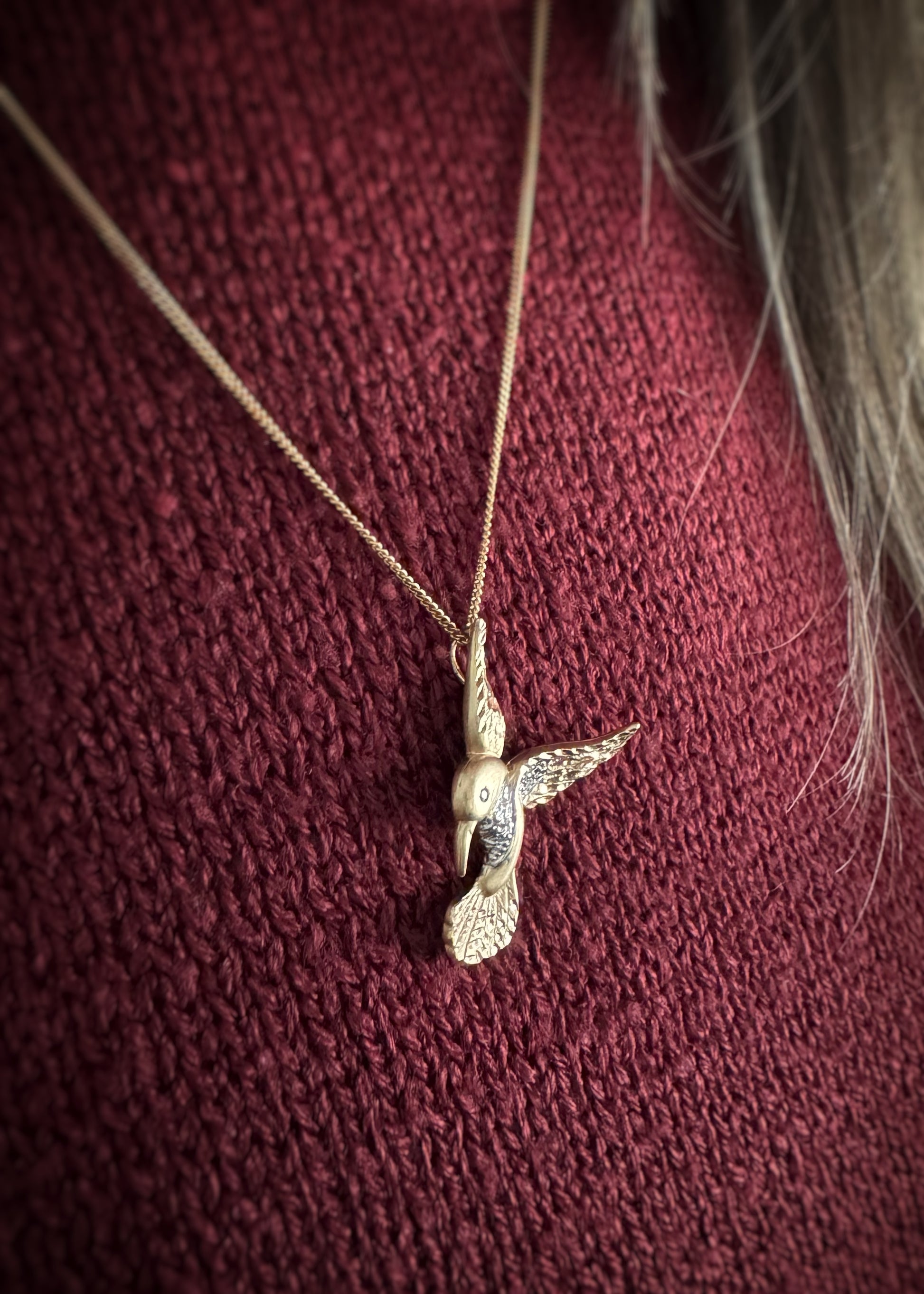 Estate 14k + Sapphire Hummingbird Pendant