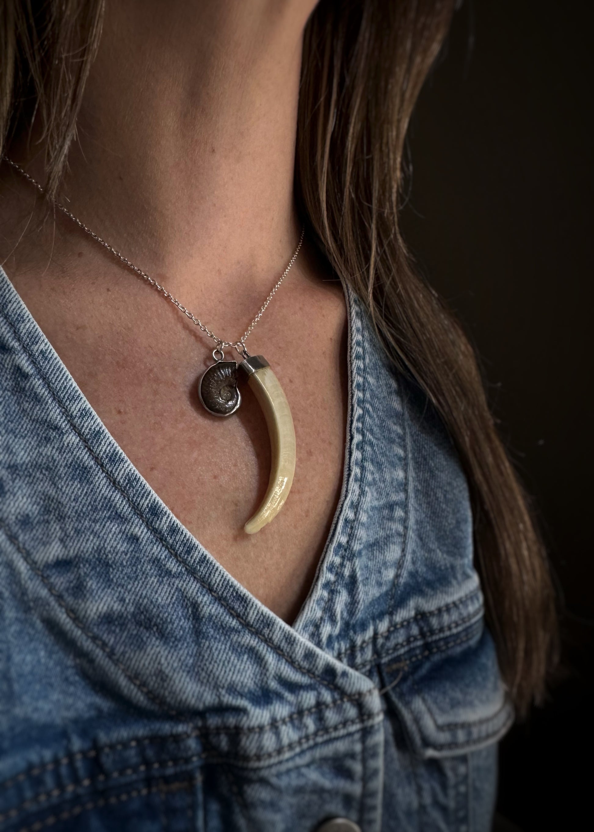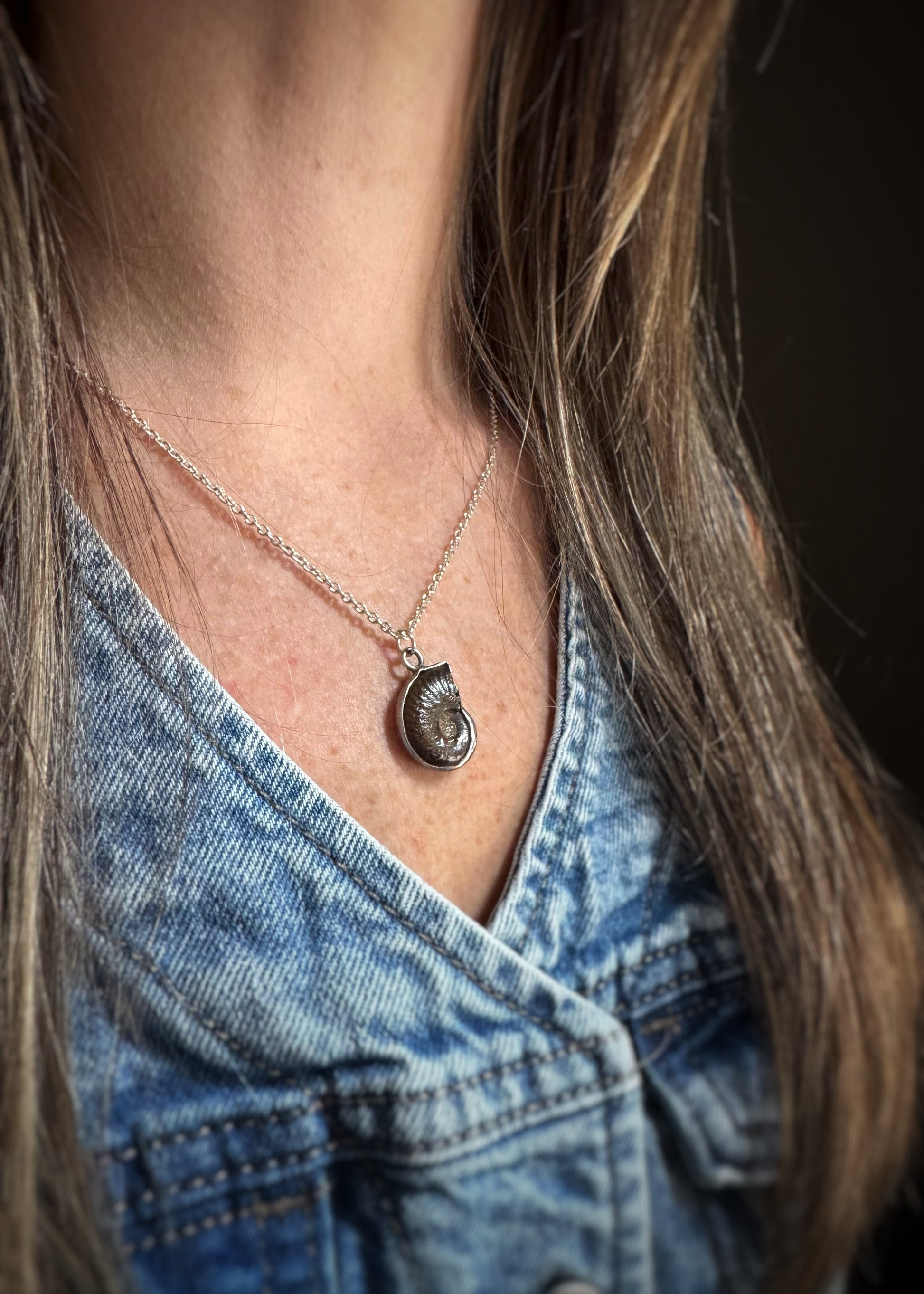Estate Sterling Silver + Fossilized Ammonite Pendant Charm