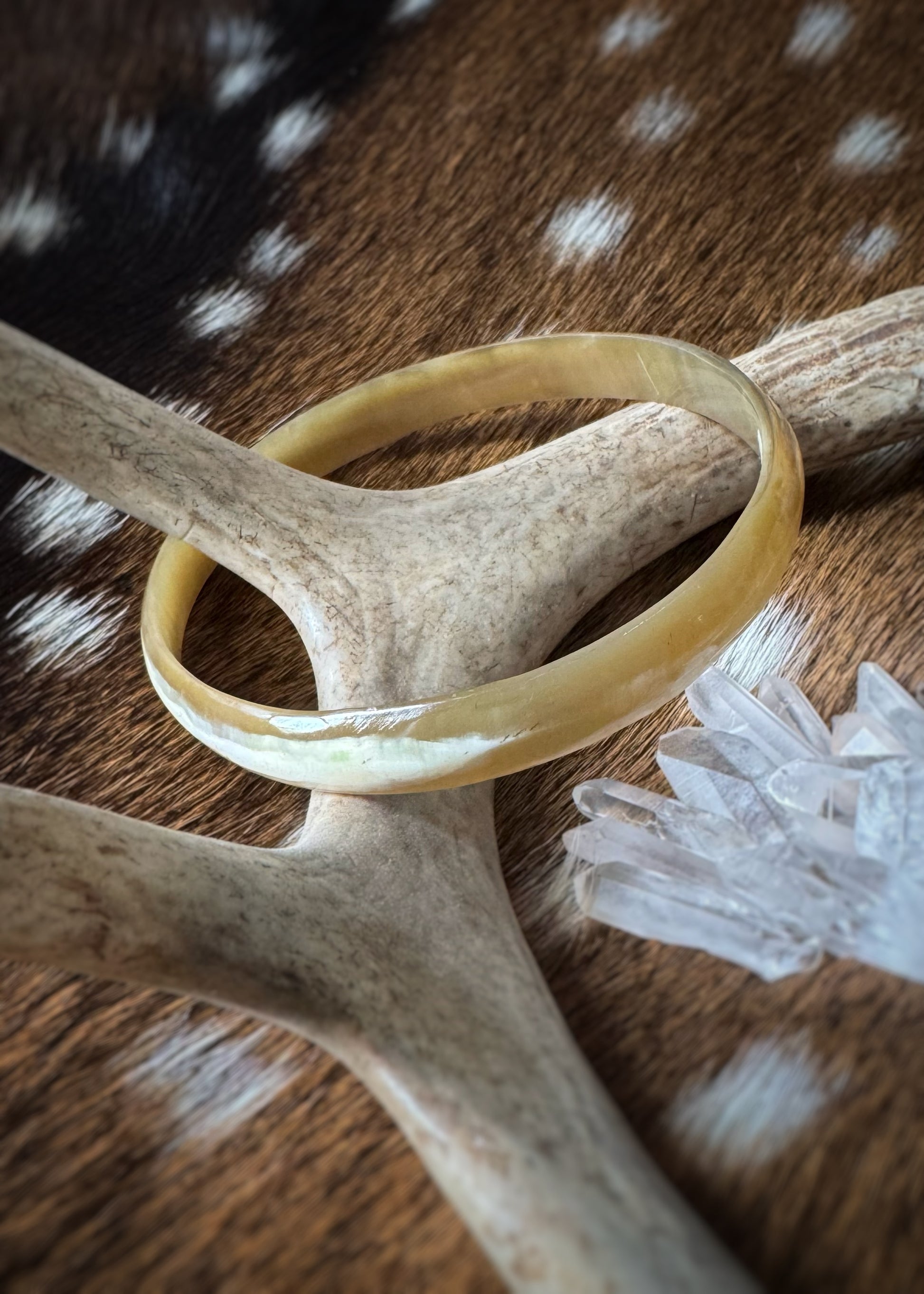 Beautiful round horn bangle bracelet. Carved from naturally shed water buffalo horns. The bangle measures 9-10.3mm in width. The inner diameter of this bangle measures 3 1/16".
